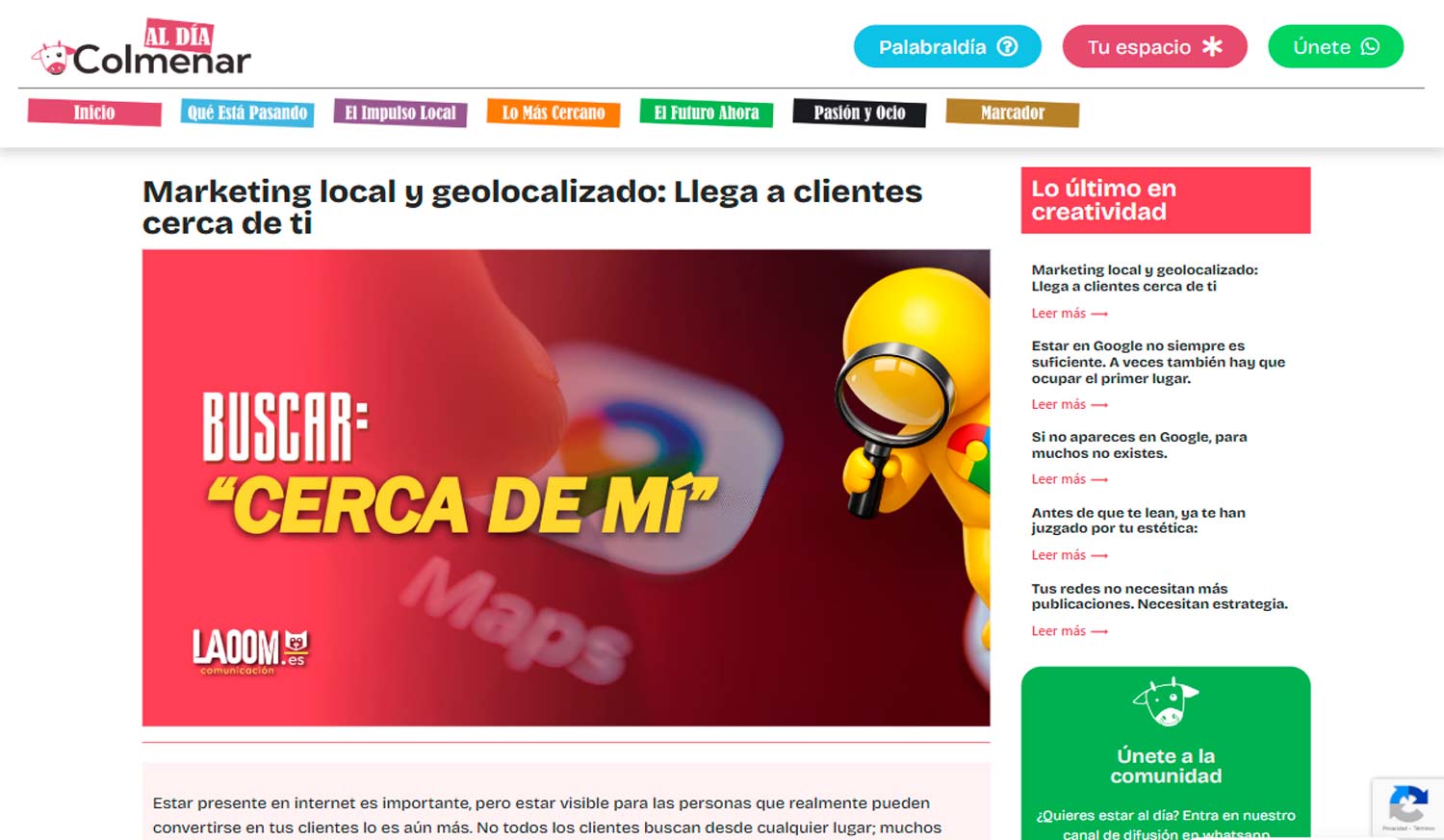 Artículo publicado en Colmenar al Día, el 18/03/ 2026